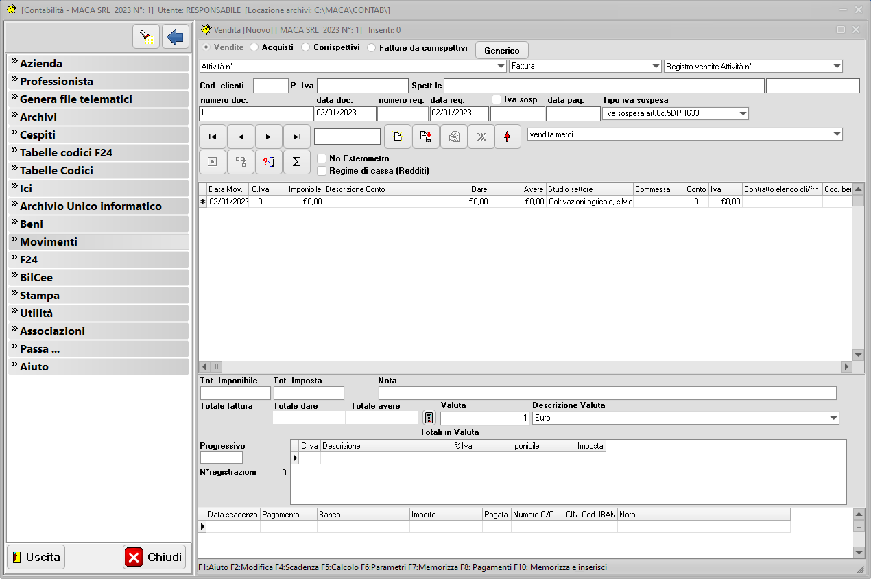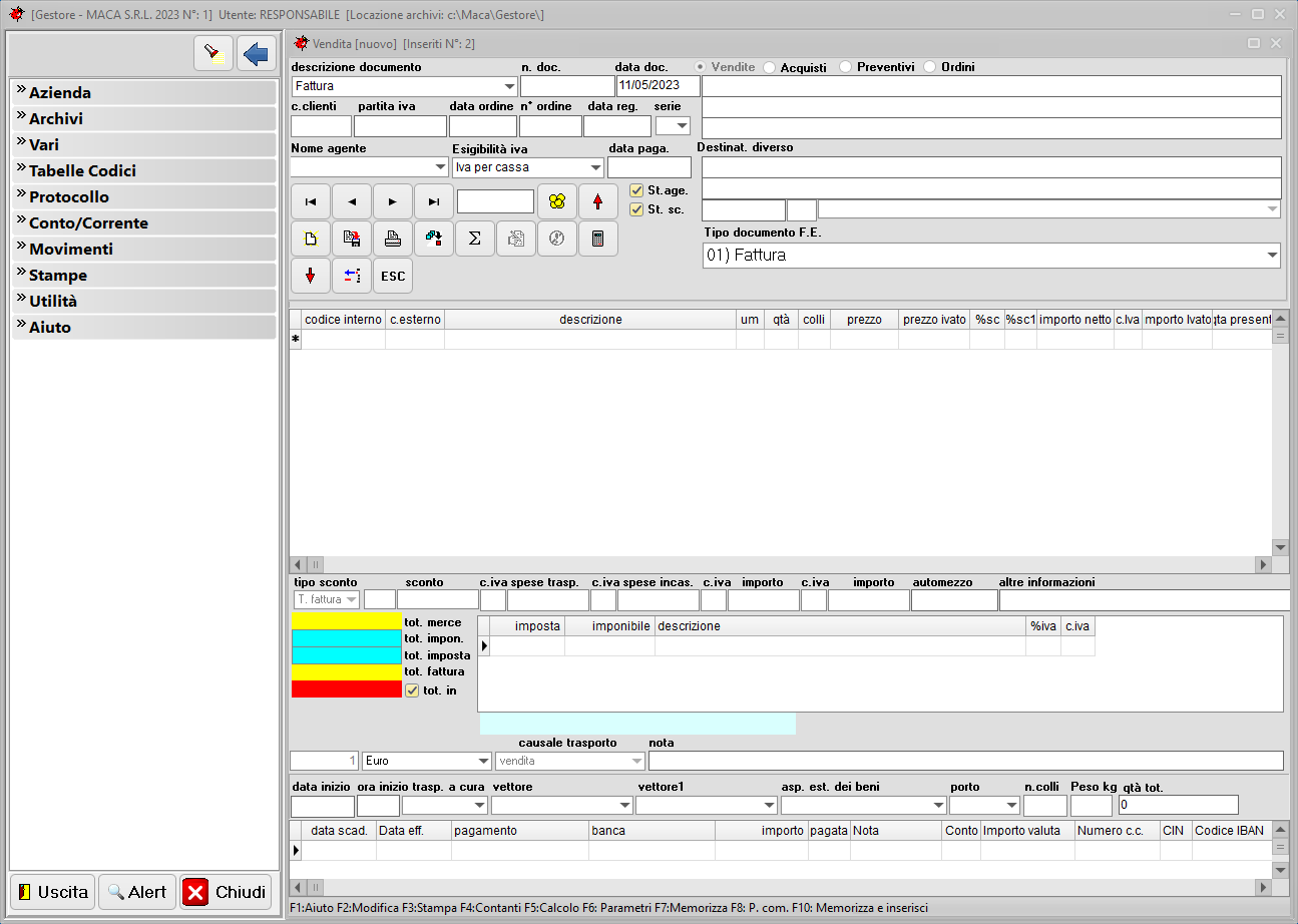 Schermata iniziale per iniziare a lavorare. Buon lavoro.