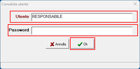 Lasciare come Nome Utente RESPONSABILE e password vuota e premere OK.
