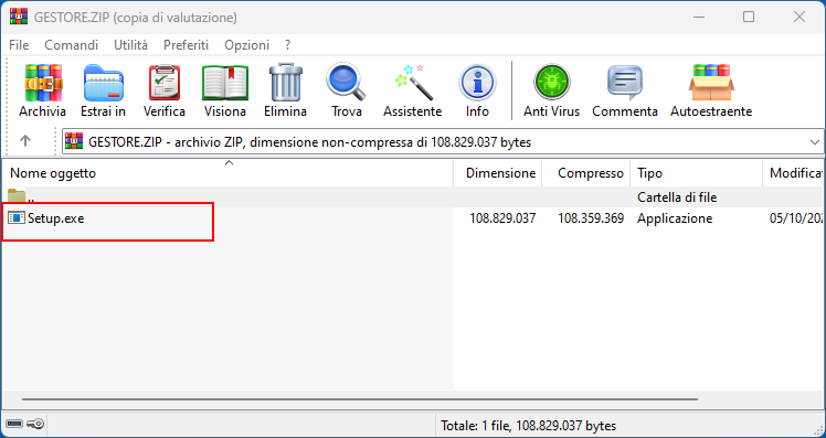 Una volta eseguito il download del file GeStore, basta aprire il file e premere sul file Setup.exe.