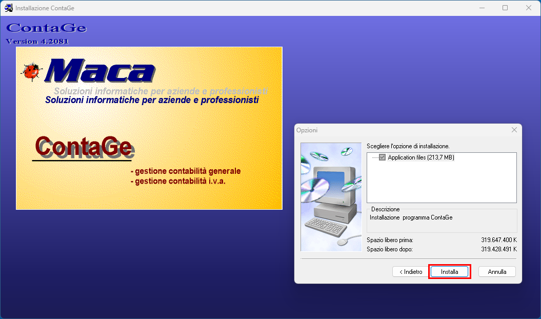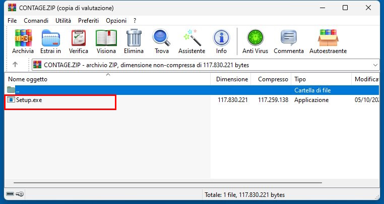 Una volta eseguito il download del file ContaGe, basta aprire il file e premere sul file Setup.exe.