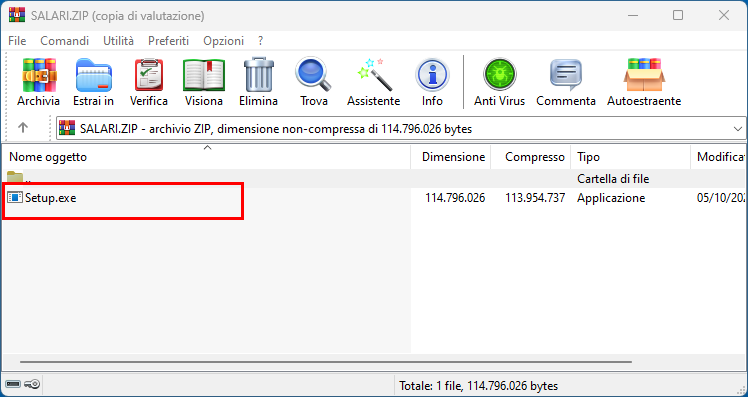 Una volta eseguito il download del file Salari, basta aprire il file e premere sul file Setup.exe.
